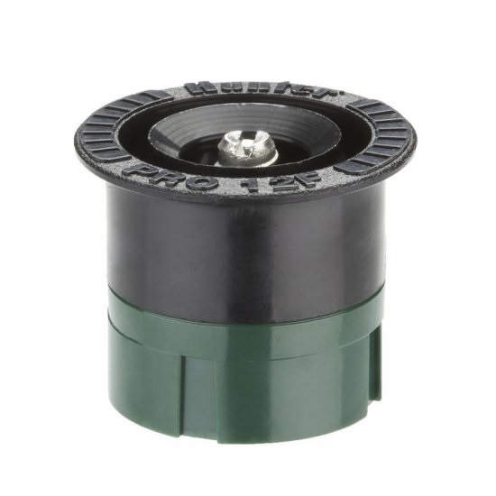 A Hunter 12F állandó szórásképű fúvóka bármely belső menetes fúvókával szerelhető szórófejházzal egyszerűen használható.